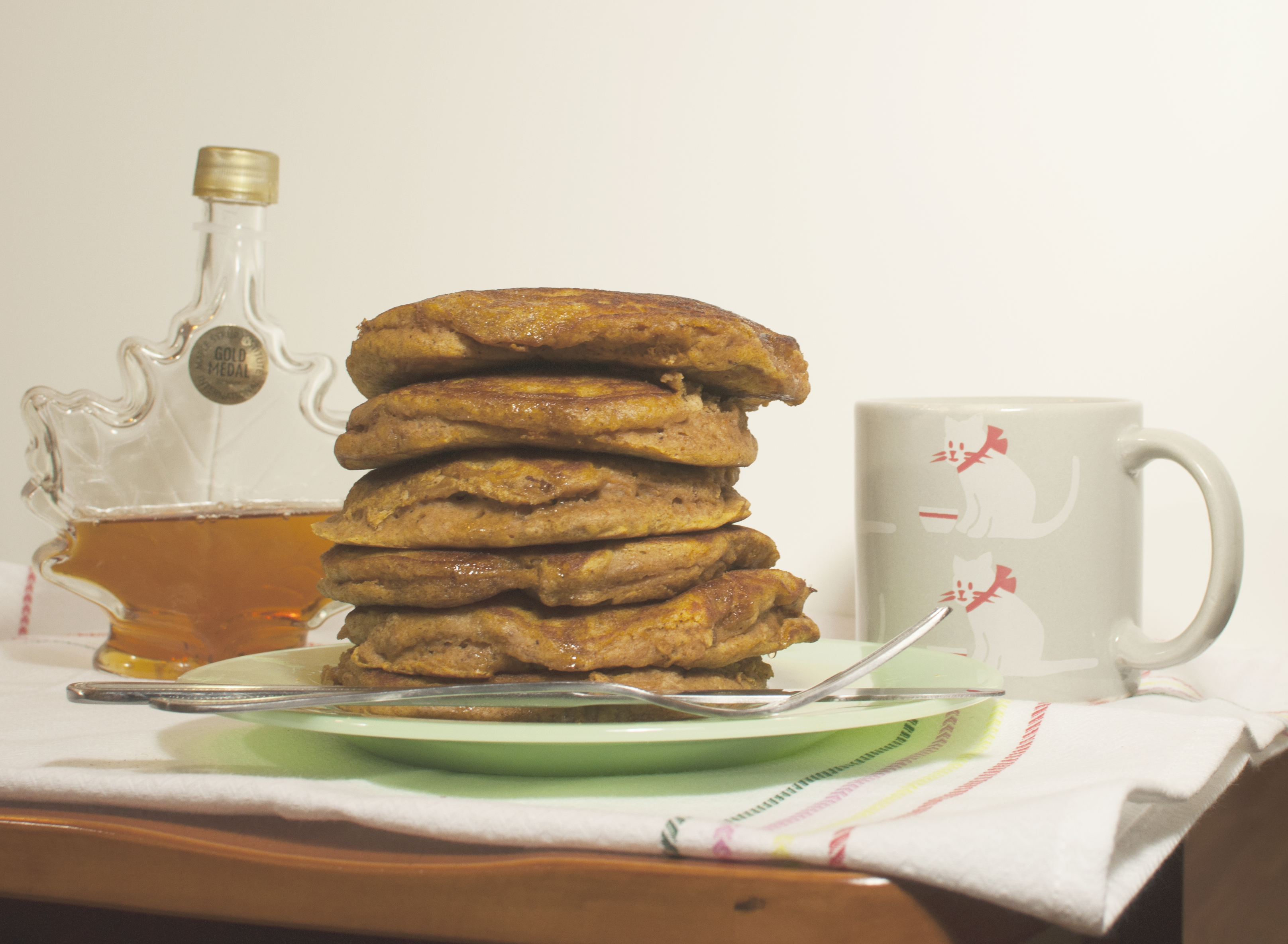 All that rambling aside: I’m glad I decided to open up the good, old-fashioned cookbook, and make myself some from-scratch pancakes. It was worth it; it was delicious, and best of all, it reminded me to slow down, and enjoy some freakin’ pumpkin in the middle of winter in Saint Louis! Winning.